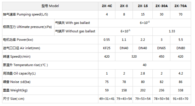 特點:2X旋片泵可直接從大氣壓啟動抽氣;可單獨做中低真空泵也可用于其他高真空泵組合用前級泵用,該產品廣泛應用于冶煉、工業醫藥電子與半導體工該 泵不可用來抽含氧過、有毒、易爆與油發生化學反應或對黑色金屬有腐蝕作用的氣體,也不可當壓縮機或傳輸泵用。