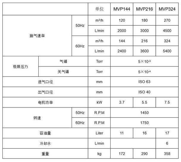 設計原理MVP系列直聯高速旋片式真空泵,以創新設計、精良的制造,滿足客戶的需求,填補TRP系列在較大抽速的空白。由上蓋、油箱、電機支座、泵芯組成,配置止逆閥和氣鎮閥護真空泵和真空系統。效率高、易操作及維護方便。設計特征1.極限真空度高。2.完善的內置進氣口止逆閥系統在停止時保護真空系統。3.采用國際標準法蘭。4.低噪音與低振動。5.恒定壓力油循環系統。6.方便的氣鎮閥控制7.維修和保養簡便。8.方便的冷卻系統,風冷(MVP-144/216)或水冷(MVP-324)。